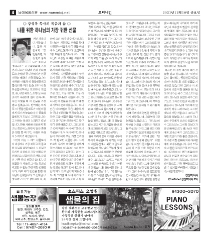 4 남미복음신문 www.nammicj.net 오피니언 2021년12월10일 금요일
