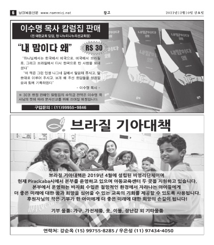 6 남미복음신문 www.nammicj.net 광고 2021년12월10일 금요일