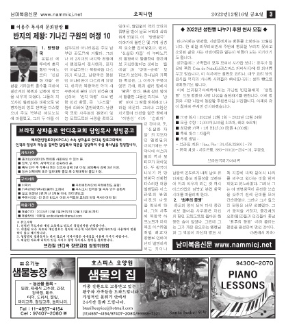 남미복음신문 www.nammicj.net 오피니언 2022년12월16일 금요일 3