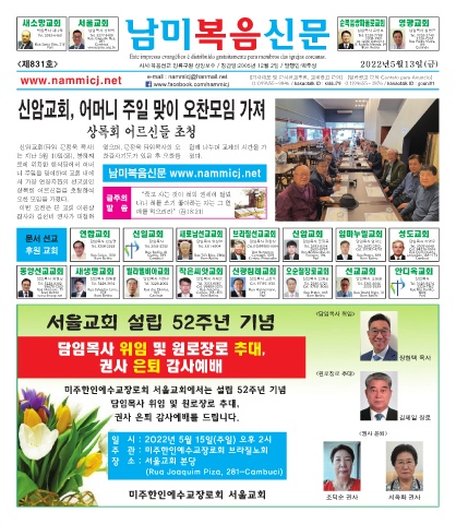 Page 1 - [남미복음신문_831호]2022년 5월 13일 지면보기