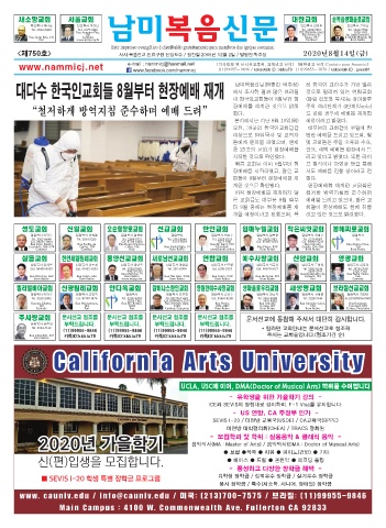 <제750호> 사시:복음선교 인류구원 신앙보수 / 창간일:2005년 12월 2일 / 발행인:박주성 2020년8월14일(금)