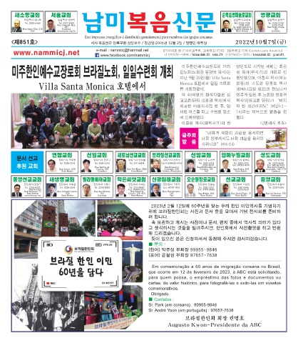 Page 1 - [남미복음신문_851호]2022년 10월 7일
