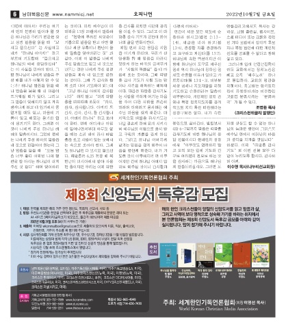 6 남미복음신문 www.nammicj.net 오피니언 2022년10월7일 금요일