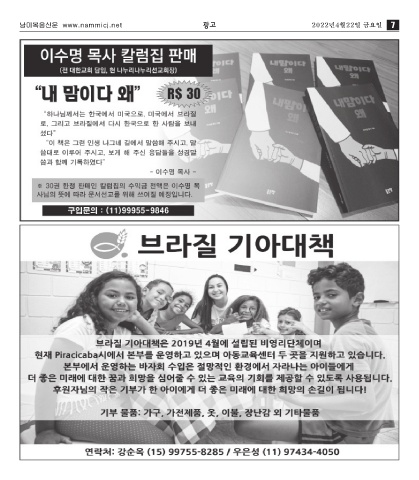 남미복음신문 www.nammicj.net 광고 2022년4월22일 금요일 7