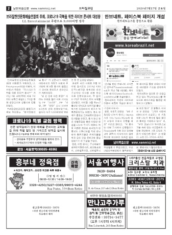 2 남미복음신문 www.nammicj.net 브라질교민 2020년7월17일 금요일