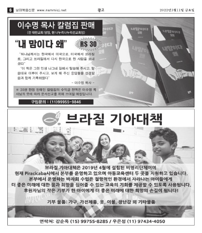 6 남미복음신문 www.nammicj.net 광고 2022년3월11일 금요일