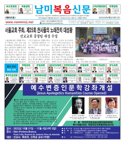 www.nammicj.net e-mail : nammicj@hanmail.net [기사제보 및 문서선교후원, 교계광고 문의] (11)99655-3876 / kakaotalk ID : gouni81