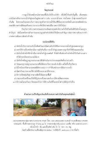 2) ลดค่าใช้จ่ายเรื่องพลังงานในการผลักดันเพื่อการส่งน้ าเข้าสู่แปลงเพาะปลูกจึงท าให้ต้นทุนลดลงด้วย