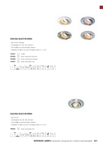 INTERIOR LAMPS | recessed ceiling built-in lamps | transversable 221
