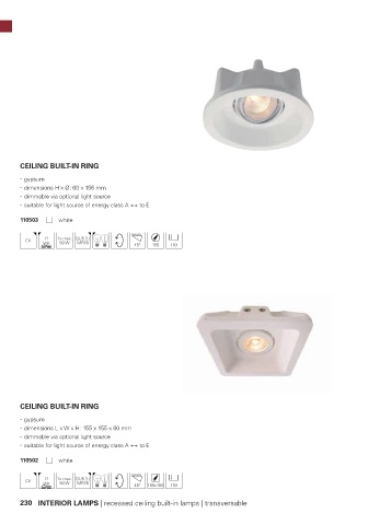 230 INTERIOR LAMPS | recessed ceiling built-in lamps | transversable