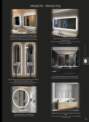 Rectangular mirrors with direct and indirect light,