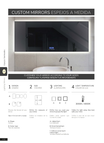 Lighting Mirrors 1 DISEÑO 2 SIZE 3 ILUMINACIÓN 4 COLOR DE LUZ