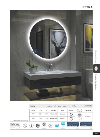 PETRA CRI>90 IP44 IK00 incl Cristal 4mm/Metal Lighting Mirrors Espejos Iluminados