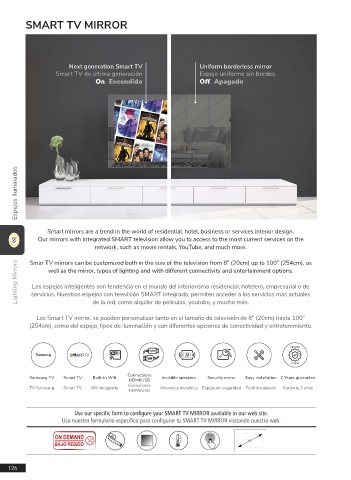 Lighting Mirrors servicios. Nuestros espejos con televisión SMART integrada, permiten acceder a los servicios más actuales