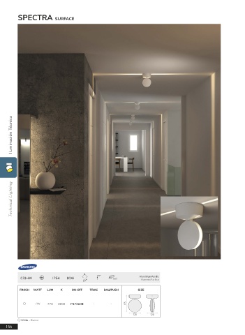 SPECTRA SURFACE Technical Lighting Iluminación Técnica CRI>80 IP54 IK06 incl Aluminium/Acrylic 10º Aluminio/Acrílico FINISH WATT LUM K ON-OFF TRIAC DALI/PUSH SIZE 7W 770 3000 P37310B - - 175 120 120 White - Blanco 156