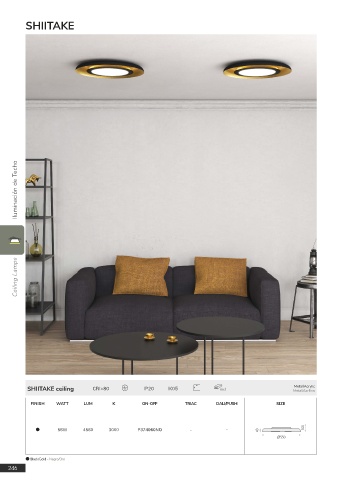 SHIITAKE Ceiling Lamps Iluminación de Techo Metal/Acrylic SHIITAKE ceiling CRI>80 IP20 IK05 incl Metal/Acrílico FINISH WATT LUM K ON-OFF TRIAC DALI/PUSH SIZE 56W 4560 3000 P374060NO - - 40 100 Ø550 Black/Gold - Negro/Oro 246