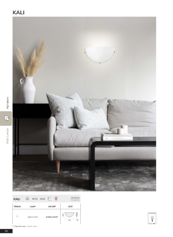 KALI Wall Lamps Apliques KALI IP20 IK00 Metal/Glass Metal/Glass FINISH LAMP ON-OFF SIZE LED BULBS 160 1xE14 LED A164121OP 300 90 Pag. 388 Opal/Chrome - Opal/Cromo 26