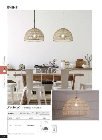 EVENS IP20 IK05 Natural Rattan/Metal