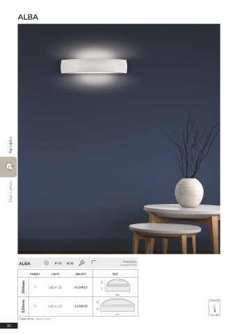 ALBA Wall Lamps Apliques Plaster/Glass ALBA IP20 IK06 Escayola/Cristal FINISH LAMP ON-OFF SIZE 300mm 1xE14 LED A33861B 100 75 300 530mm 2xE14 LED A33863B 125 90 LED BULBS 515 Pag. 388 Matt White - Blanco Mate 30