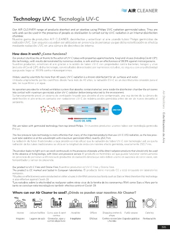 desinfección el aire entra en contacto con radiaciones UV-C de máxima acción germicida antes de ser de nuevo devuelto al