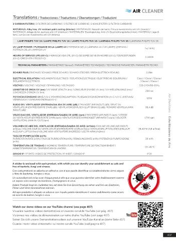 VENTILATORE (ARIA IN / OUT) (rpm) Air Sterilizers · Esterilizadores de Aire