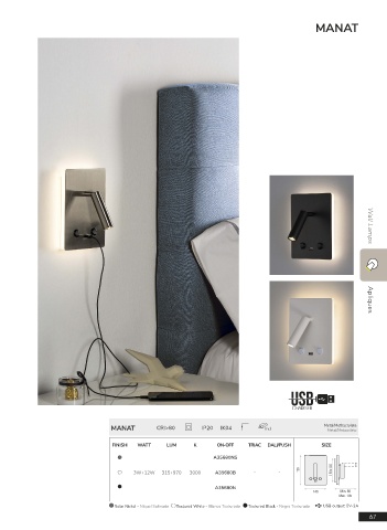 MANAT CRI>80 IP20 IK04 incl Metal/Methacrylate Wall Lamps Apliques