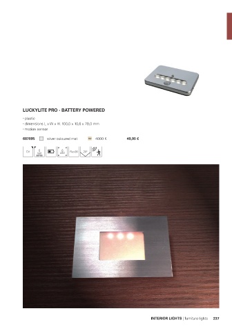 LUCKYLITE PRO - BATTERY POWERED plastic dimensions L x W x H: 100,0 x 10,6 x 70,0 mm motion sensor 687095 silver coloured mat NW 4000 K 49,95 € 6 CV 5 LED Ra>80 20° INTERIOR LIGHTS | furniture lights 237