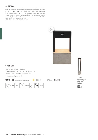 and a concrete base, the CHERTAN outdoor wall luminaire