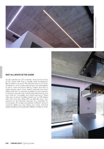 of LED stripes with fixed or variable white temperatures.