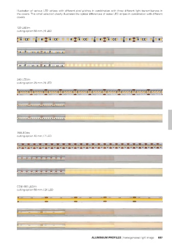 the covers. This small selection clearly illustrates the optical differences of some LED stripes in combination with different