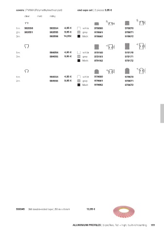 ALUMINIUM PROFILES | U-profiles, flat + high, built-in/mounting 701