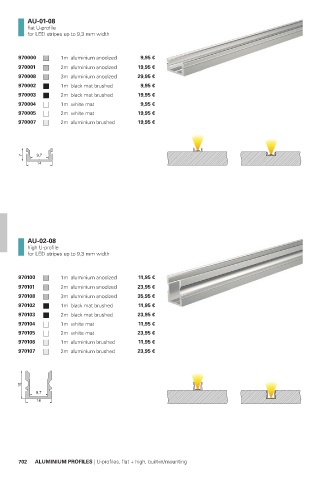 702 ALUMINIUM PROFILES | U-profiles, flat + high, built-in/mounting