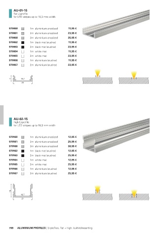 708 ALUMINIUM PROFILES | U-profiles, flat + high, built-in/mounting