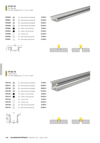 716 ALUMINIUM PROFILES | T-profiles, flat + high, built-in