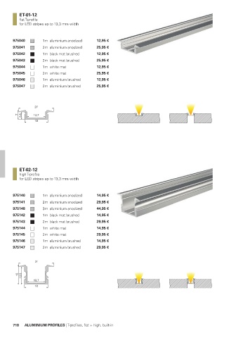 718 ALUMINIUM PROFILES | T-profiles, flat + high, built-in