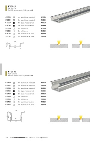 720 ALUMINIUM PROFILES | T-profiles, flat + high, built-in