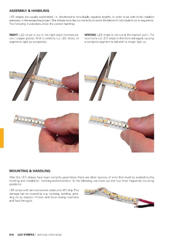 RIGHT: LED stripe is cut at the right place [marked pla- WRONG: LED stripe is not cut at the marked point. The