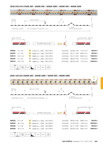 840335 50 m roll 3000K [+/- 150K] 120 LED/m 19,0 W/m 91,58 lm/W 1740 lm/m 1599,95 €