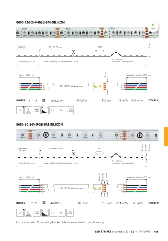 840351 5 m roll 460-620 nm 120 LED/m 27,5 W/m 38 lm/W 1045 lm/m 209,95 €