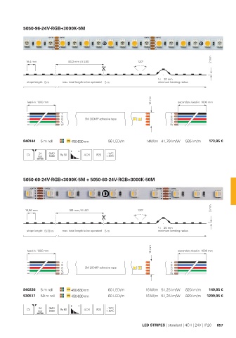 840236 5 m roll 450-630 nm 60 LED/m 16 W/m 51,25 lm/W 820 lm/m 149,95 €