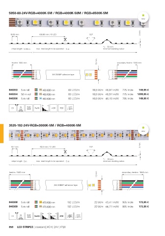 840353 5 m roll 460-630 nm 60 LED/m 16,5 W/m 46,97 lm/W 775 lm/m 149,95 €