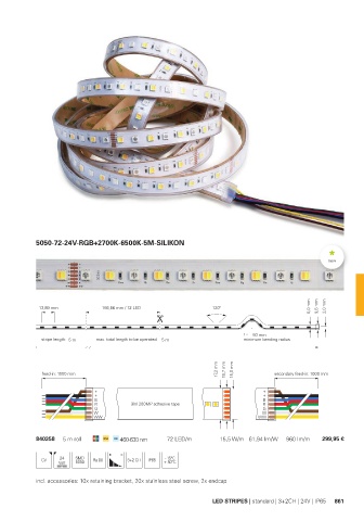 840358 5 m roll 460-630 nm 72 LED/m 15,5 W/m 61,94 lm/W 960 lm/m 299,95 €