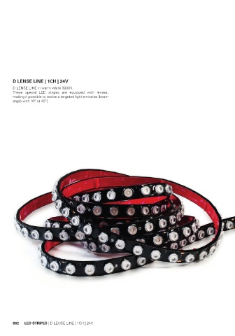 D LENSE LINE | 1CH | 24V D LENSE LINE in warm white 3000K These special LED stripes are equipped with lenses, making it possible to realise a targeted light emission [beam angle with 10° or 45°]. 862 LED STRIPES | D LENSE LINE | 1CH | 24V