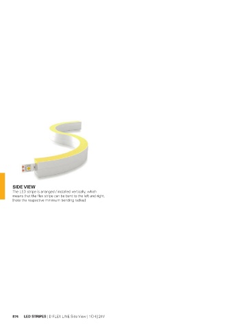 SIDE VIEW The LED stripe is arranged / installed vertically, which means that the flex stripe can be bent to the left and right. [note the respective minimum bending radius] 874 LED STRIPES | D FLEX LINE Side View | 1CH | 24V