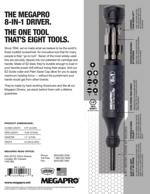 8-IN-1 DRIVER. PATENTED PALM-SAVER CAP™ Large, comfortable cap that moves with your palm so you don’t get blisters when you’re driving hard.