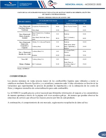 COSTO DE LAS ANUALIDADES MÁS BAJAS Y MÁS ALTAS, DE ALGUNAS TARJETAS DE CRÉDITO, SEGÚN TIPO
