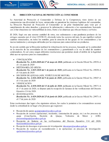 II. DIRECCIÓN NACIONAL DE PROTECCIÓN AL CONSUMIDOR