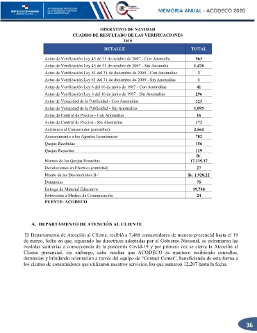 A. DEPARTAMENTO DE ATENCIÓN AL CLIENTE