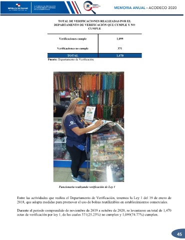 Entre las actividades que realiza el Departamento de Verificación, tenemos la Ley 1 del 19 de enero de
