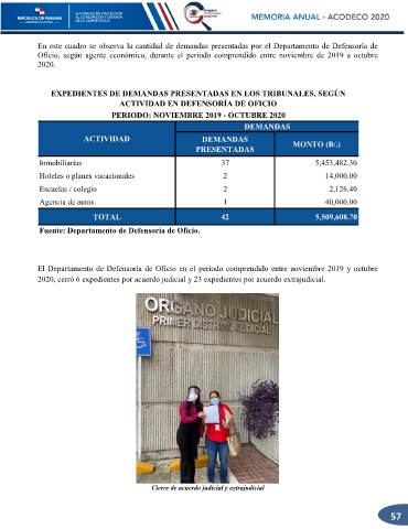 En este cuadro se observa la cantidad de demandas presentadas por el Departamento de Defensoría de